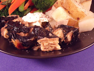 While it's minimally processed, we typically only eat it once a month or less, but it's is a relatively inexpensive convenience food (about $3), and it's considered 3.5 servings. Our favorite quick meal with laver fish is the one in the photos; pan-fried laver fish, boiled potatoes, and steamed, blanched or sautéed vegetables. JD likes to dress his potatoes with EB, while I prefer to make a dipping sauce out of Vegenaise, prepared horseradish, lemon juice, a pinch of sea salt, and lots of freshly cracked black pepper. I use this sauce on both the potatoes and the laver fish. This meal usually takes around 15 minutes to prepare, so we can make it in a snap, even when we're super-famished.